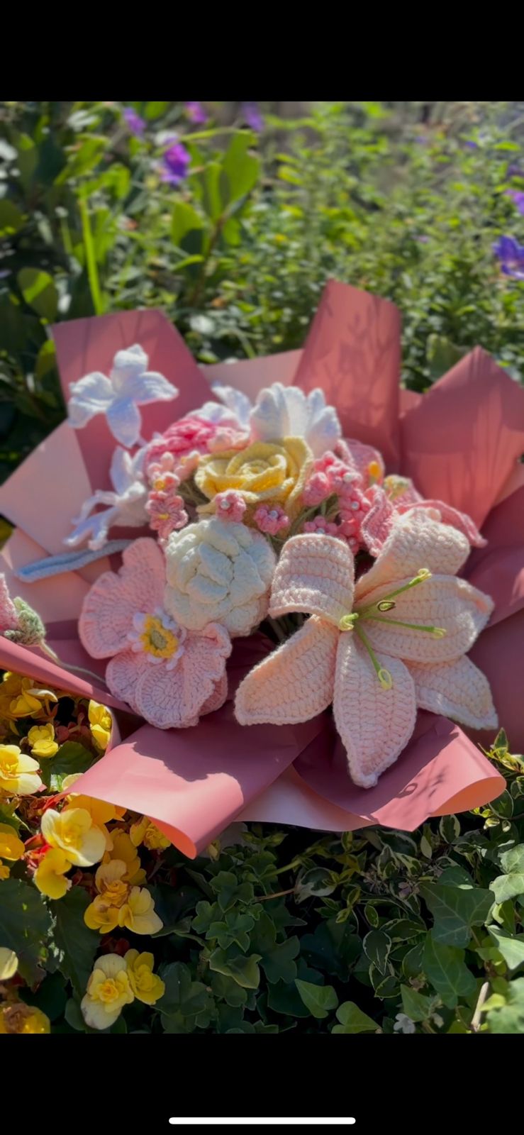 Delicate, vibrant, and full of handcrafted charm, this Elegant Blooms Bouquet brings together a stunning selection of crochet flowers: the soft beauty of the rain lily, the classic elegance of wine glass and Thai roses, the sweet sentiment of forget-me-nots, the timeless lily, a bold poppy, and a graceful tulip.