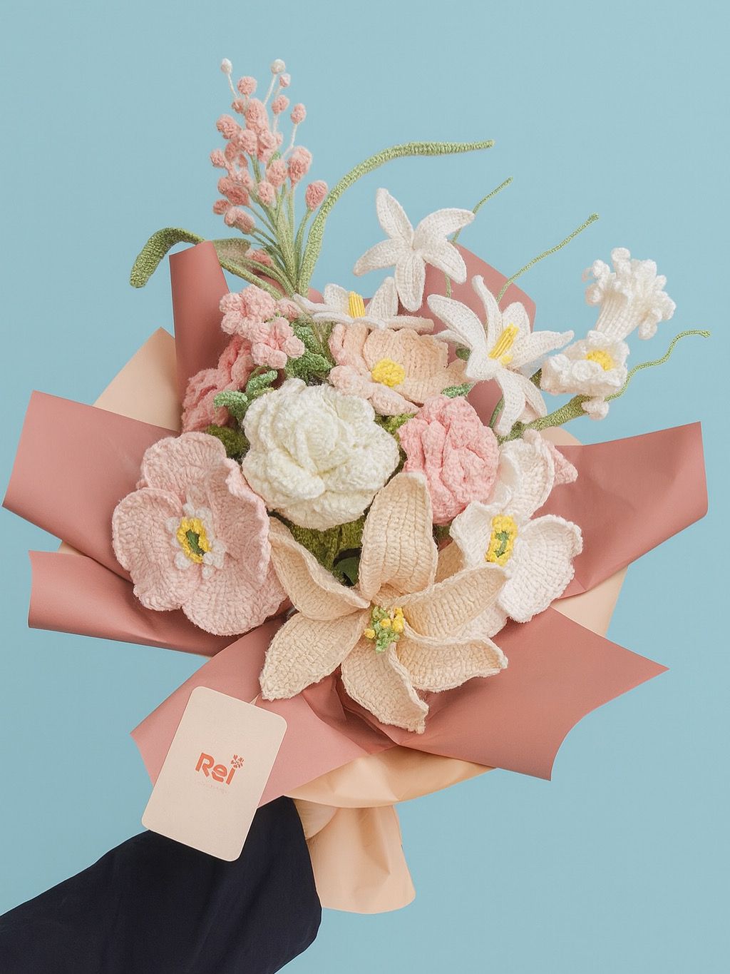 Soft, elegant, and timeless — the Blush Bloom Bouquet combines gentle shades of cream, peach, and pink crochet flowers for a beautifully handcrafted touch of charm.