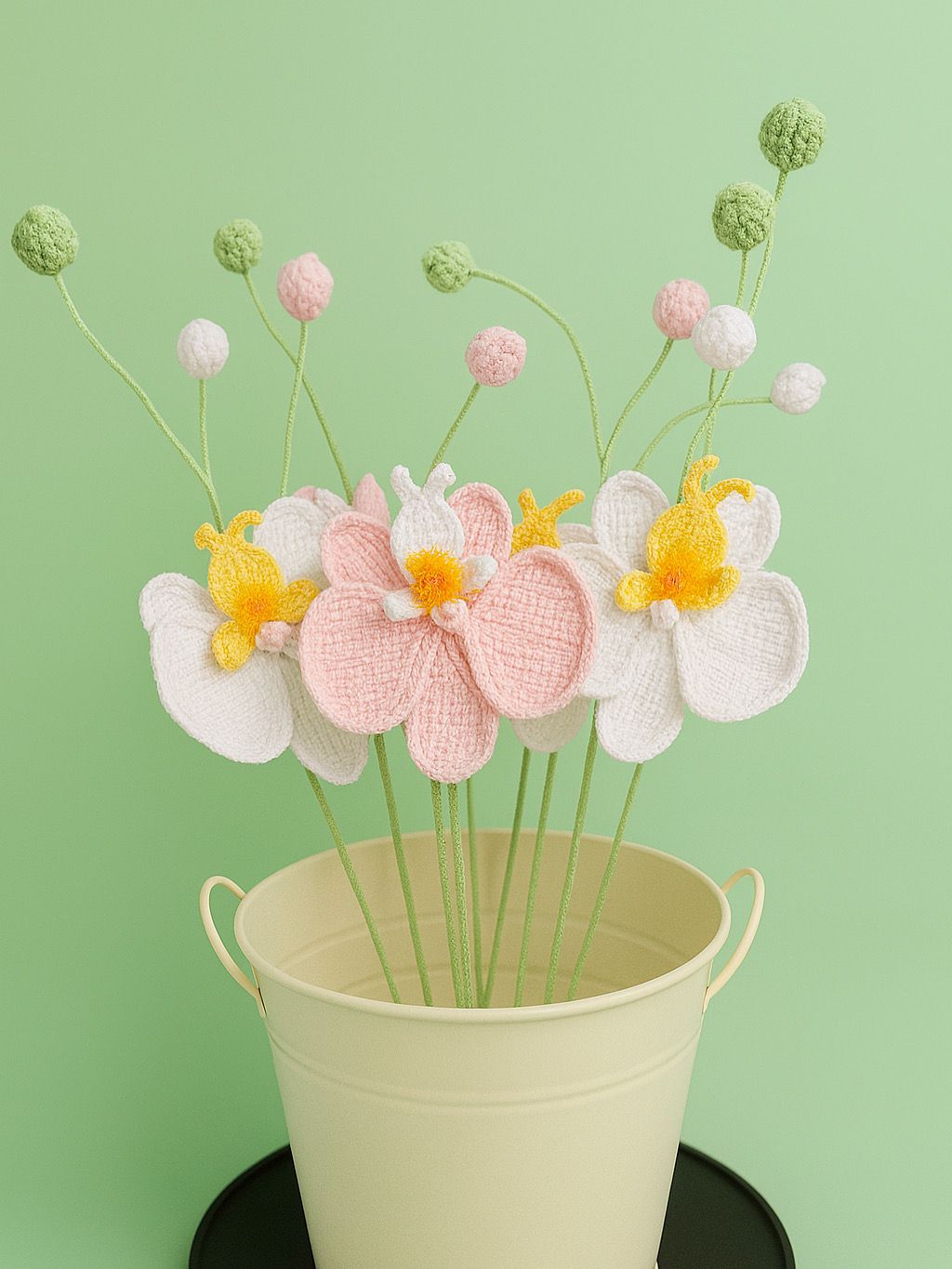 Celebrate the vibrant beauty and abundance of a blooming orchard with this handcrafted Orchard . Featuring a delightful mix of crochet flowers inspired by spring blossoms, this arrangement brings the freshness and charm of fruit trees in full bloom right into your home.
