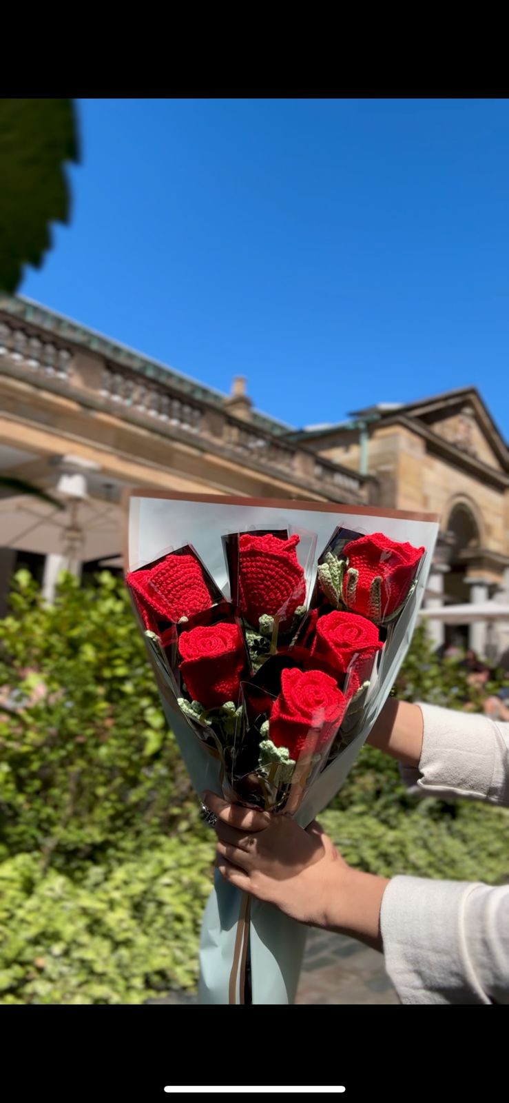 Perfect for romantic gifts, special occasions, or as a sophisticated accent for your home, this bouquet combines classic beauty with cozy handmade charm—no watering needed!